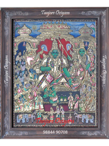 Embracing the sacred energy of Pradosham Shiva with the mesmerizing Antique Pradosham Shiva tanjore painting, it captures Lord Shiva’s celestial presence during this highly auspicious time. Known as the destroyer of karma and granter of blessings, Shiva’s divine form in this artwork radiates peace, transformation, and cosmic balance.